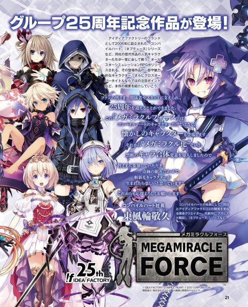Như đã giới thiệu trong bài viết trước để chào mừng 25 năm thành lập Idea Factory, Iffy cùng Compa chính thức khởi động dự án game Mobile mang tên Mega Miralce Force.